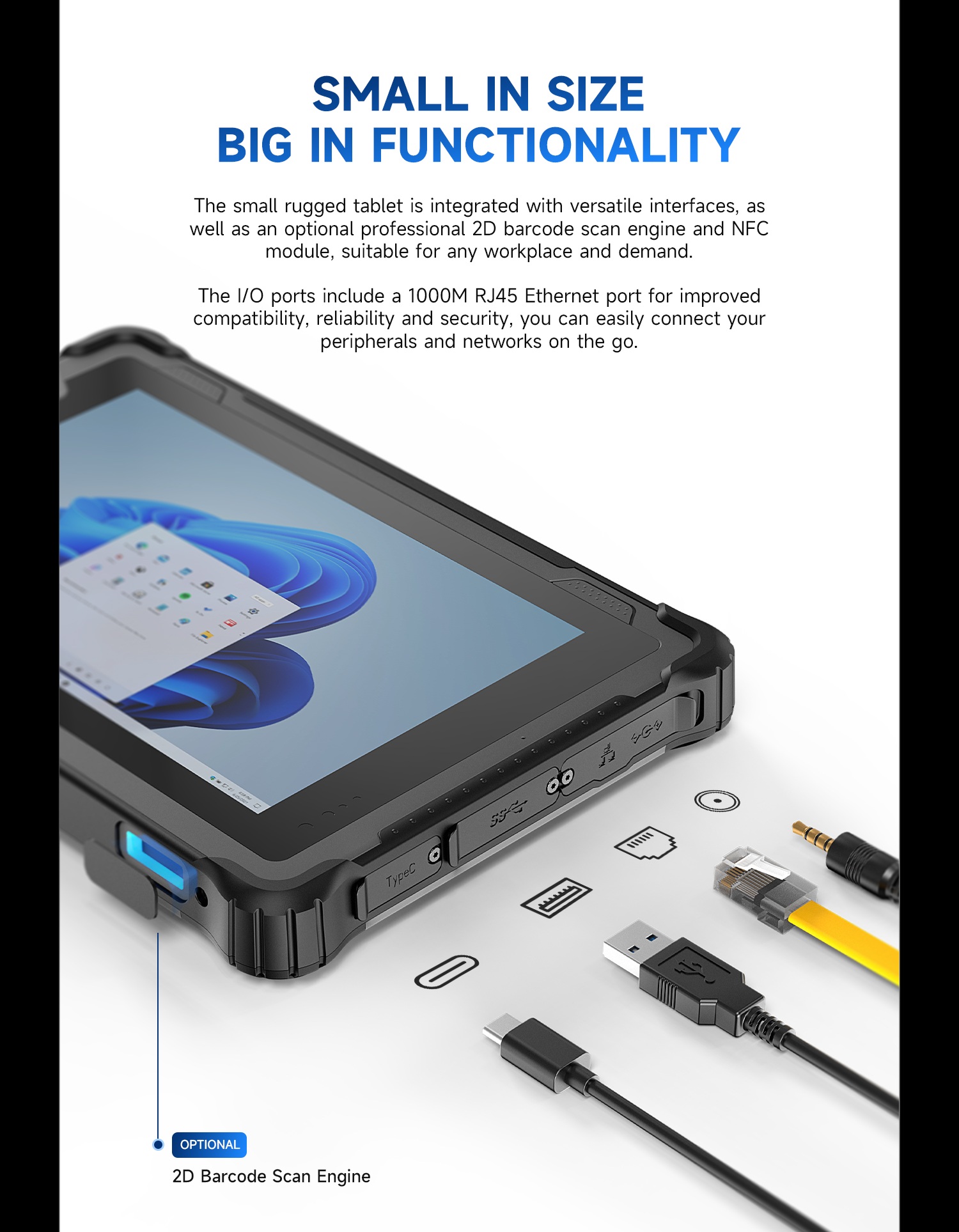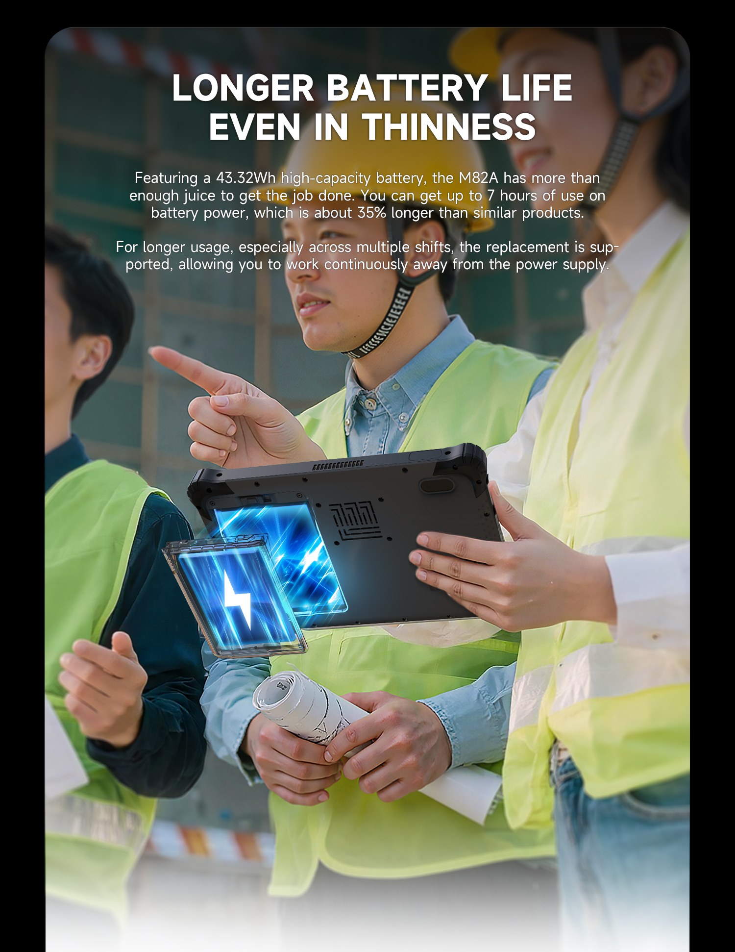 The Onerugged M82A is a compact, powerful 8-inch rugged tablet featuring 12th Gen Intel Core processors, IP67 protection, up to 7 hours battery life, and Wi-Fi 6E. Ideal for industries like surveying, energy, utilities, manufacturing, and warehouse management, it offers seamless performance in extreme conditions.