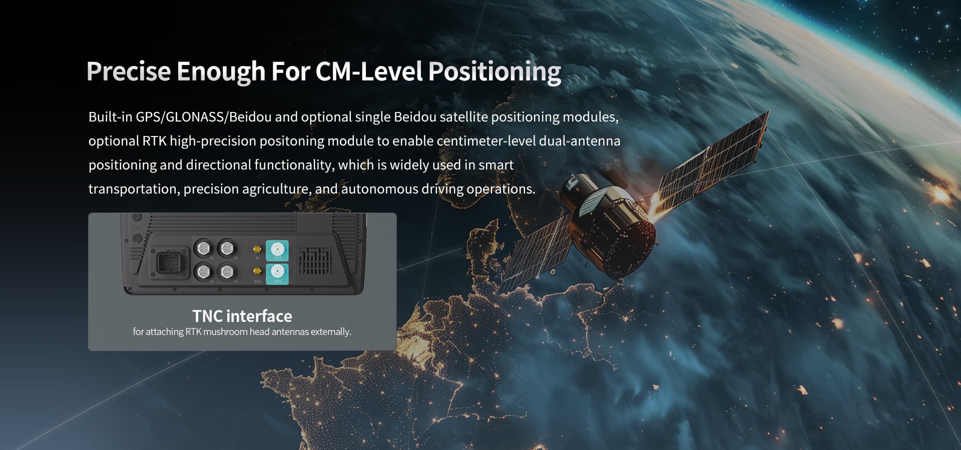 GPS/GLONASS/Beidou and RTK high-precision positioning systems are available